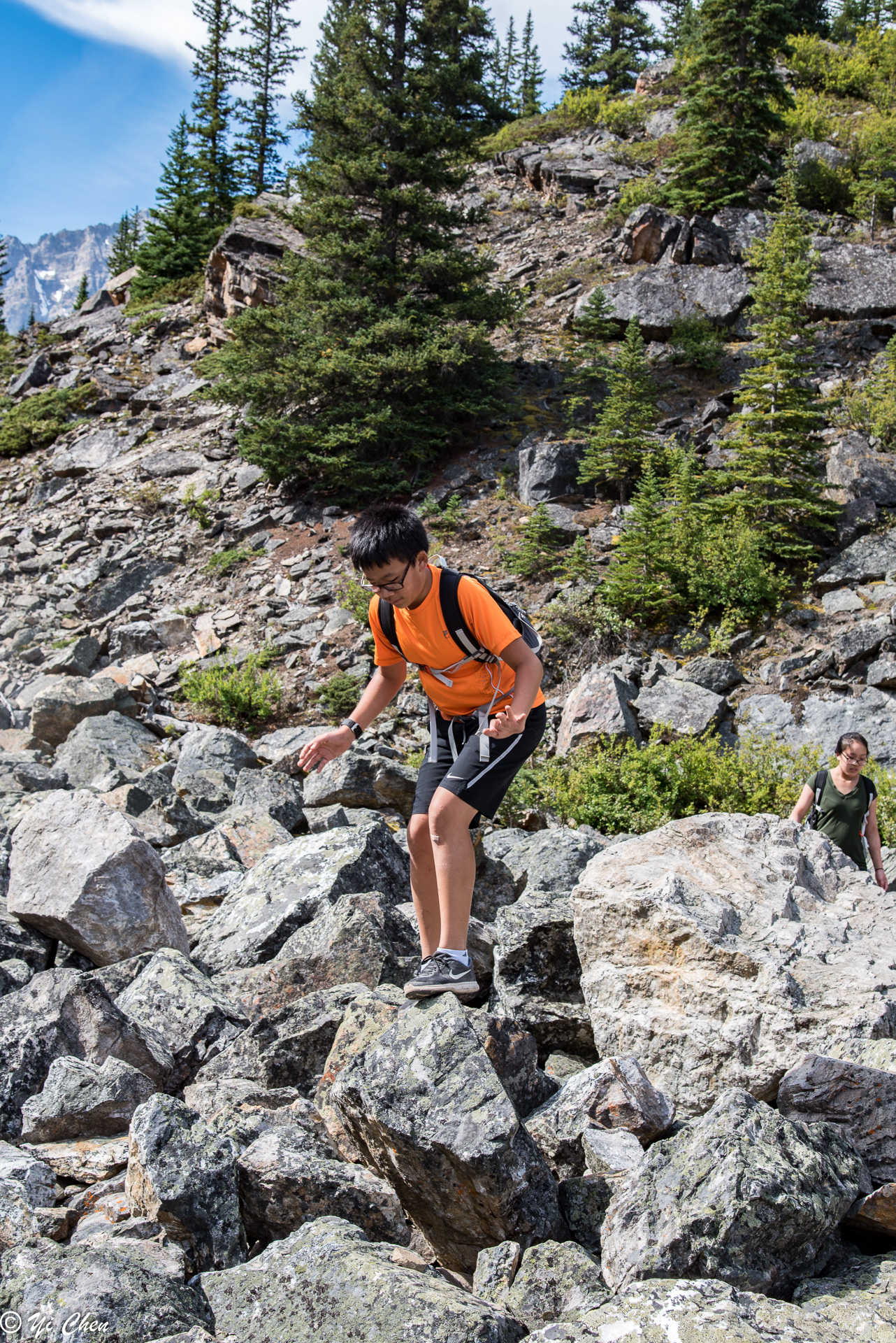 The hike to Consolation Lake was relatively short and flat. There were small detours along the trail to enjoy some wild mushrooms, gushing water stream, meadows, and squirrels. Then we were faced with this sea of rock slides, which completely blocked us direct access to the lake.