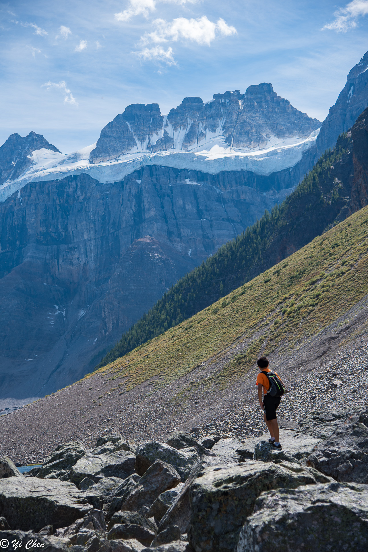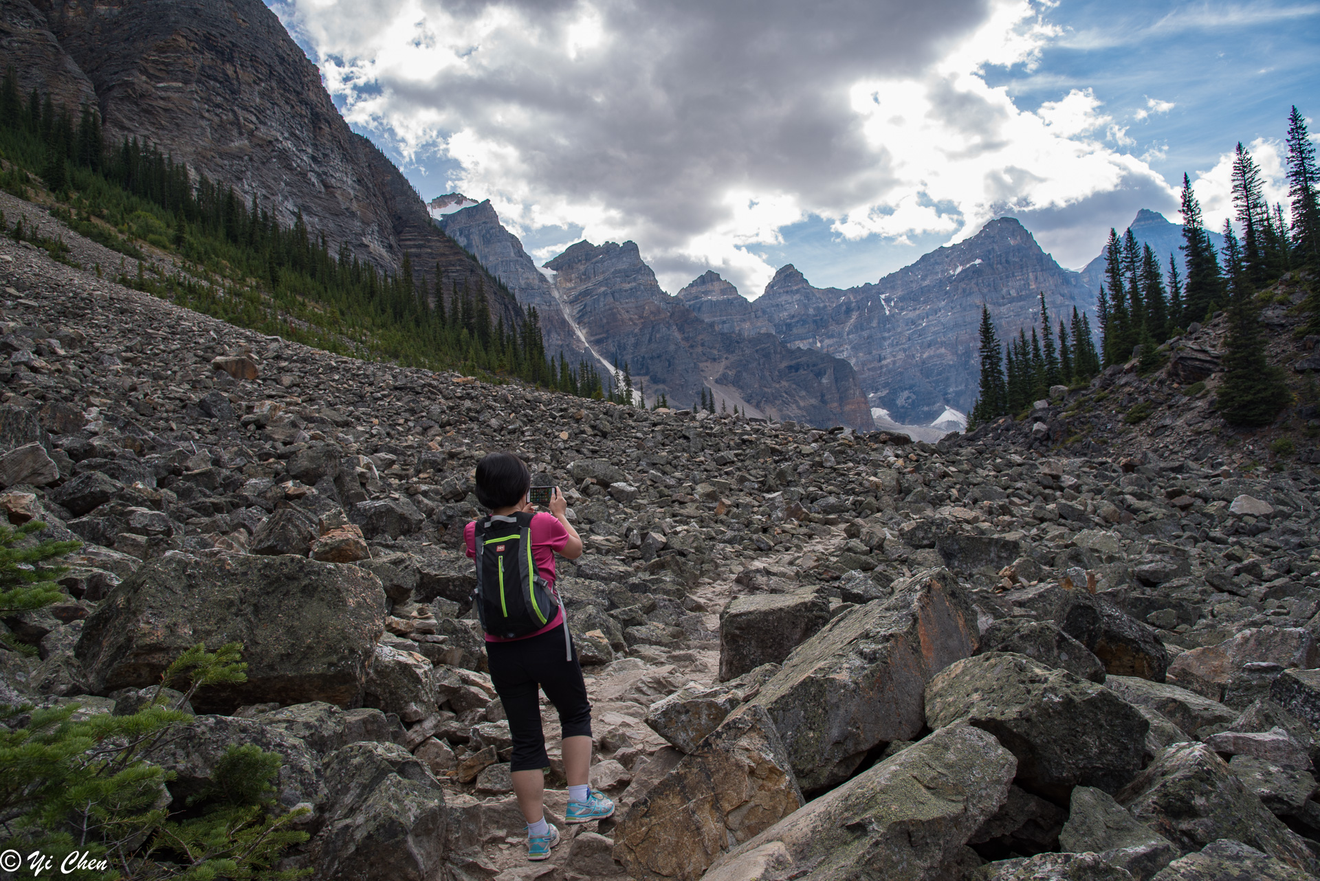 After coming back from Consolation Lake, Alex and I went on the Rock Pile again and saw Moraine and Ten Peaks with entirely different color. It was not as crowded any more in the late afternoon.