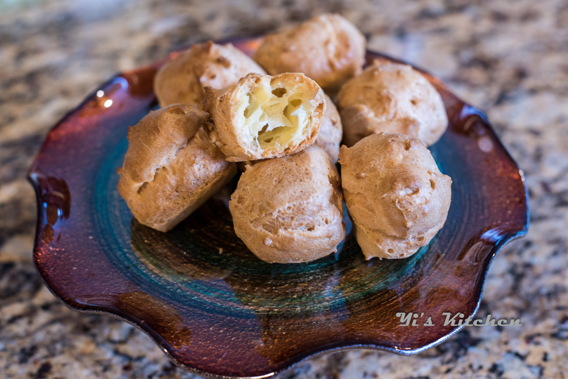 泡芙大家都很熟悉,肯定也都很喜欢,它是法式甜点中很常见的款式,pâte à choux泡芙酥皮也算是烘培“基本功”啦?。泡芙酥皮只用黄油,水,面粉,盐和糖,完全没有泡打粉或酵母之类的膨胀剂,依靠高液体含量在高温烘培中形成的蒸汽使得面团蓬松。刚刚烤好的泡芙掰开能看到里面是空心的,那夹什么馅就看自己喜欢了☺️。