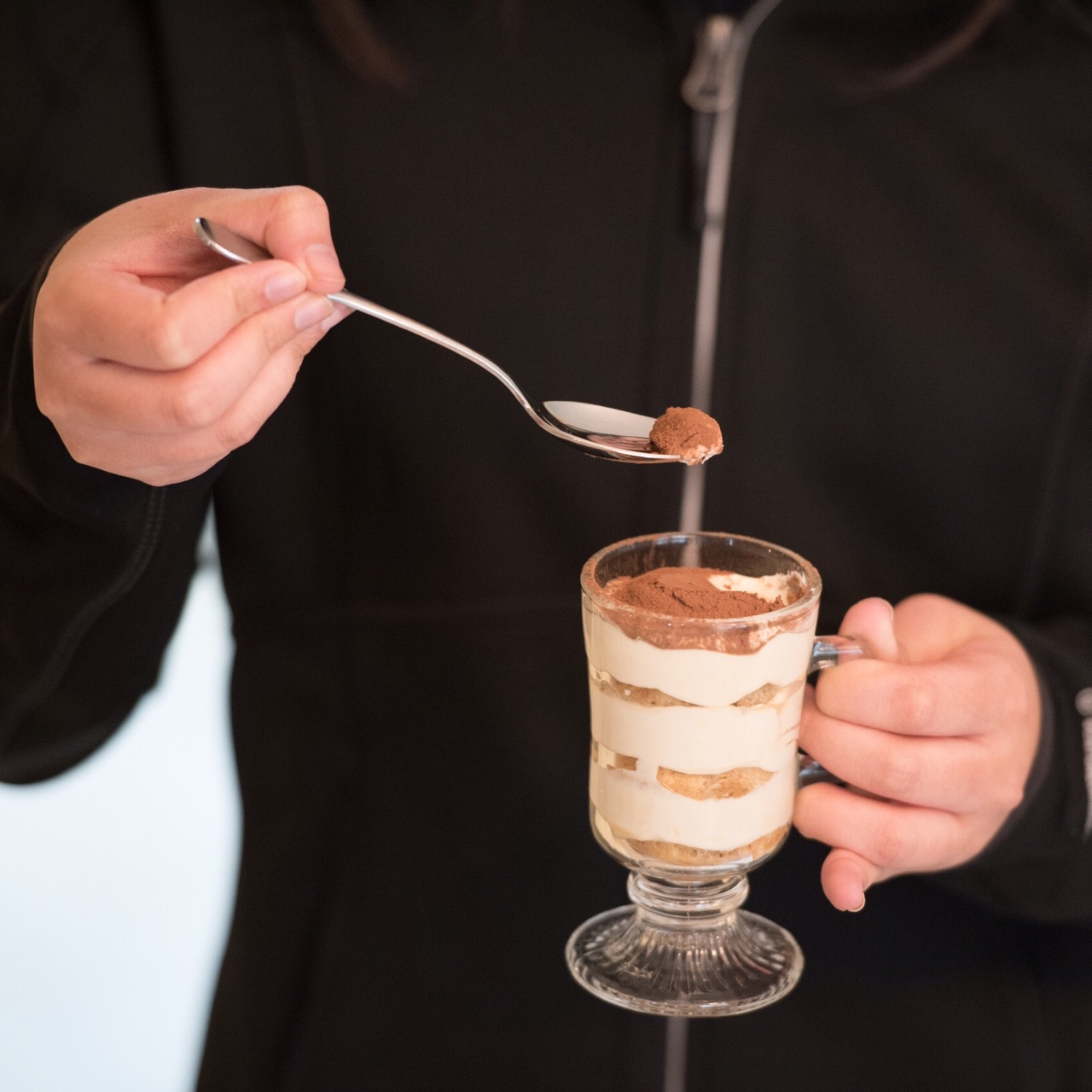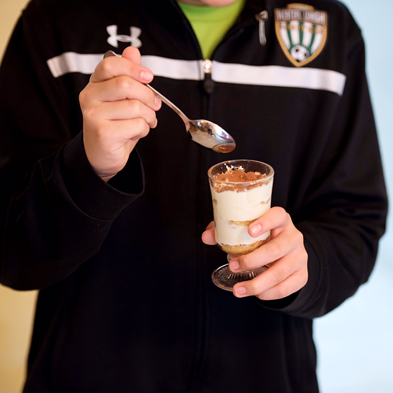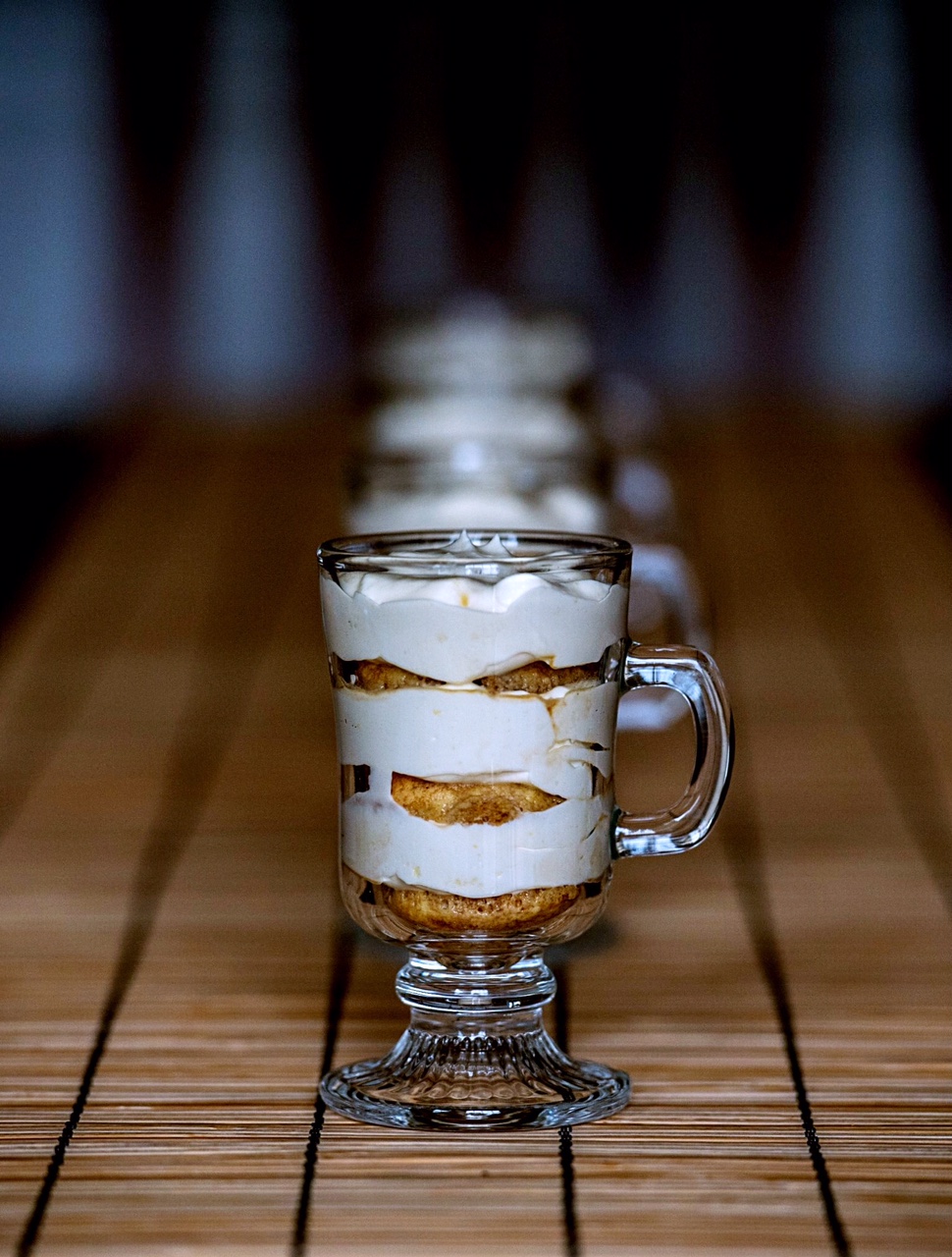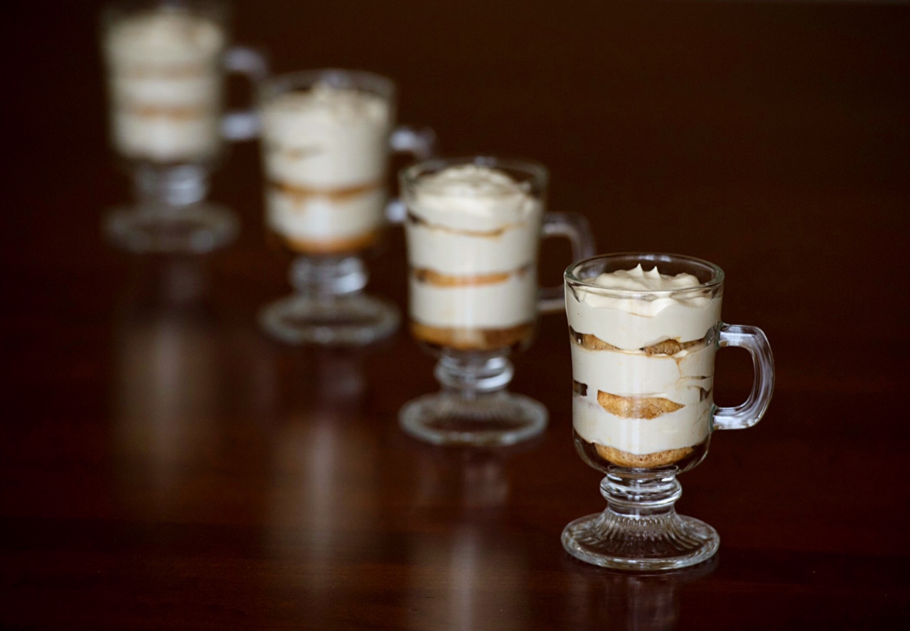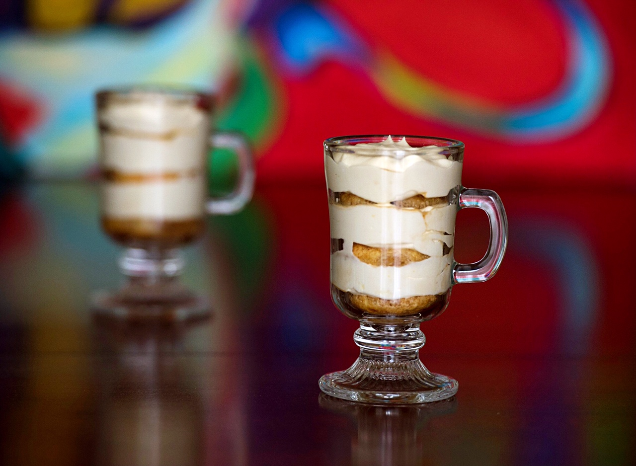 - Soak 1 cookie in coffee at a time for a few seconds, place in the cup, layer 1 tablespoon of cheese mixture on the cookie, continue with 2 more layers of cookie and cheese mixture until it’s almost full to the rim.
